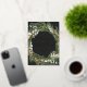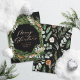 Modern minimal foliage wreath script Merry Christmas holiday Christmas card. Hand painted eucalyptus, pine tree branch, minimal foliage and modern rustic rattan wreath and real foil gold, rose gold and silver give this holiday card a luxurious feel. In classy, black, greens, browns and greys.