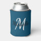 Modern Minimal Blue Monogram Name + Initial Can Cooler