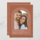 Modern minimal bohemian rust terracotta geometric wedding save the date card design.