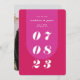 Our minimal, bold retro style wedding save-the-date card is perfect for the trendy couple who loves standing out and making a bold statement. Our design features a bold bright pink-magenta colour combo. A simple abstract arch shape creates a bold look with the wedding date displayed boldly in white large font. The reverse side features a full photo layout with a bold monogram and an optional couple's wedding website address. Designed by Moodthology Papery