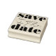 Trendy and modern save the date rubber stamp with "Save the Date" prominently displayed in a bold print layout. Customise with the couple's name.