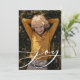 Modern minimal foliage botanical full photo script joy holiday Christmas card. Hand painted eucalyptus, pine tree branch, minimal foliage and modern rustic rattan wreath give this holiday card a luxurious feel. In classy greens, browns and greys.