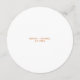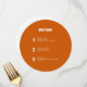 This contemporary wedding menu design features the courses of your wedding meal in simple fonts and a sleek and clean design. This burnt orange circle menu card certainly stands out from the crowd. Modern typography and menu design for a modern wedding. All elements are customisable - text, background and colours. Edit the names and dates on the back -or simply delete if you want to use this round menu card for an event that is not a wedding.