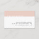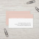 Eyecatching modern design has a minimalist feel in chic blush pink. Business cards feature your name in white on a band of blush millennial pink, with three lines of contact information on the lower right. Cards reverse to solid pale pink with your name or choice of custom text centred in modern black lettering.