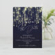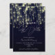 This minimalist save the date invitation design features a navy blue gold sparkling background finished with elegant classic calligraphy typography. A modern yet elegant customizable save the date design makes this a perfect wedding stationery choice for a minimalist wedding, a rustic wedding, a modern wedding, a destination wedding, and more.