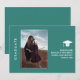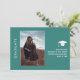 A modern minimal chic 2026 graduation announcement photo card in soft turquoise with a simple clean design, featuring classic sans serif script and customizable photograph on the front, and a customizable message in an elegant script on the back.