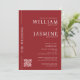 Introducing a sleek and sophisticated wedding invitation design, perfect for couples seeking a modern touch. This template features a bold red background that exudes elegance and style. The names are prominently displayed in a classic white serif font, adding a timeless charm to the design.