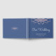 This wedding guest book features rose quartz flourishes on a denim blue background. Background colour can be changed to any available colour. Custom text allows you to add the names of the bride and groom and their wedding date.