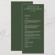 Modern Minimal Dark Moss Green Wedding Reception Menu
