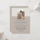 Simple with modern minimal styling, this elegant wedding invitation features an arch photo template to personalise with your selected photo. Two tone neutral shades of light beige and taupe beige add simple styling to this invitation. An elegant font pairing includes a combination of serif fonts with a calligraphy accented "and" joining the bride and groom's names. The back of the invitation has a QR code template for including your wedding website information. You can have guests RSVP on your website as well as find all the details about your wedding schedule, events, transportation, hotel accommodations, etc. This invitation is a wonderful choice for weddings year-round. You can change the background colours to suit your wedding colour palette by selecting "edit using design template" and changing the background layer colours to your liking.