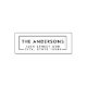Custom-designed self-inking return address stamp featuring personalized family name and address in modern typography framed in a rectangle. This classic and modern address stamp is perfect for announcements, cards, invitations, letters, and more.
