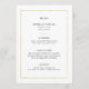 This modern and elegant wedding menu features simple black text on a white background, with a faux gold frame.