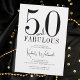 Modern Fifty and Fabulous black and white minimal 50th birthday invitation that you can personalise and send out for your fiftieth birthday party celebration. Features chic stylish typography with a signature script, and a clean modern layout.