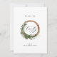 Modern minimal foliage wreath peace script holiday Christmas card. Hand painted eucalyptus, minimal foliage and modern rustic rattan wreath give this holiday card a luxurious feel. In classy greens, browns and greys.