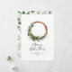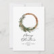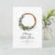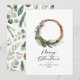 Modern minimal foliage wreath peace script holiday Christmas card. Hand painted eucalyptus, minimal foliage and modern rustic rattan wreath give this holiday card a luxurious feel. In classy greens, browns and greys.