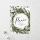 Modern minimal foliage wreath peace script holiday card