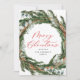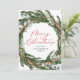 Modern minimal foliage wreath script Merry Christmas holiday Christmas card. Hand painted eucalyptus, pine tree branch, minimal foliage and modern rustic rattan wreath give this holiday card a luxurious feel. In classy greens, browns and greys.