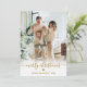 Modern Minimal Gold Script 4 Photo Merry Christmas Holiday Card