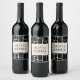 Modern minimal graphic black and white wedding decor party favour wine label.