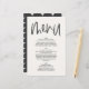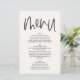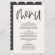 Modern minimal graphic handwritten monochrome wedding menu. Modern on trend typography design. Part of a collection, colours can be changed to suit your colour scheme.