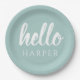 Modern Minimal Green And White Hello And You Name Paper Plate