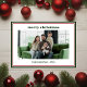 This simple red and green bordered photo holiday card with your favourite photo in the centre and the words "Merry Christmas" in a modern lowercase font in green above the photo and your family name and the year in a clean crisp CAP font in green below the photo is perfect for sending to your friends and family. It's minimal and classic design is sure to bring smiles to the faces of every recipient. The back is a matching green.