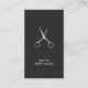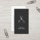 Modern elegant customisable business card template with faux silver scissors icon. Perfect for hair stylists, hair salons. Minimalist design.