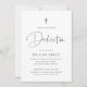 Invite guests to celebrate your little one's dedication with these modern and minimal invitations in classic black and white. Simple design features "Dedication" in casual handwritten script, with your ceremony and celebration details beneath in modern soft ash black lettering. A small modern cross illustration completes the design.