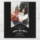 Modern Minimal Happy Holidays Photo Black Ribbon Wine Label