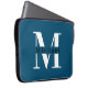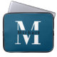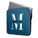 Modern Minimal Initial + Name Blue Monogram Laptop Sleeve