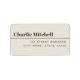 Light tan brown or custom colour return address labels with your name aligned to the left and return address aligned to the right separated by a thin line. Fonts and colours can be customised with the design tool.