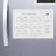 Trendy and chic 2025 magnetic calendar card. This stylish business card template features your business name and circle logo and optional tagline/message text, contact and social media details. Text comes in jet black and lightest pale grey font, against a light grey background.