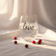 Modern Minimal 'Love' Wedding Couple Names & Date Stemless Wine Glass. Personalise with bride and groom names, and your wedding date or other memorable date below. Makes a wonderful gift idea and keepsake for couples and newlyweds.