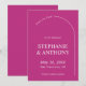 The Modern Minimalist Save the Date card features a vibrant magenta background with crisp white text, creating a bold and contemporary look. A simple arch frames the key details, adding a subtle touch of elegance while maintaining a clean, minimalist style. The high-contrast design ensures readability and makes the important date stand out, combining modern sophistication with a striking, celebratory aesthetic.