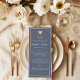 Enjoy your wedding reception with this elegant, navy blue, modern design. Beige heart at top, thin border, and menu templates created for you. A simple, elegant layout.