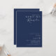 Modern Minimal Navy Blue Silver Wedding Reception Invitation