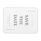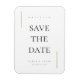 A simple, modern non photo save the date with elegant vertical gold bar accents. A great way to announce your upcoming wedding nuptials or event.