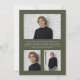 Honor your graduate with this modern olive green and gold graduation announcement designed for a refined, earthy aesthetic. The muted olive background pairs effortlessly with warm golden typography, creating a balanced and sophisticated color palette that feels both grounded and elevated. Featuring a clean editorial layout that highlights one standout senior portrait, this minimalist photo grad card makes a bold statement with its structured typography and timeless serif “grad” design. Ideal for high school or college graduates who want a distinctive yet understated alternative to traditional graduation colors, this fully customizable announcement allows you to personalize the name, class year, school, and details for a polished and memorable presentation. On the back, add an additional 3 photos and a custom message. © Kimbellished, LLC