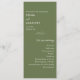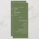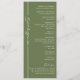 A minimal and modern olive green wedding program, designed with scripts and a floral element. Personalise with your wedding ceremony events on the front, and your wedding party, and thank you message on the back.