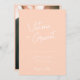 A simple and elegant modern wedding invitation in peach and white. Featuring a hand written script font for the names paired with clean modern text. Customise the text, names, photos, and background colours to fit with your unique wedding theme. This invitation is suitable for modern, trendy or informal wedding ceremonies and receptions. Complete your wedding stationery with the rest of our Modern Minimal Script Wedding Collection.