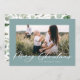 Modern minimal foliage wreath merry Christmas script holiday Christmas card. Hand painted eucalyptus, minimal foliage and modern rustic rattan wreath give this holiday card a luxurious feel. In classy greens, browns and greys.