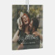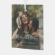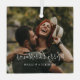 Modern Minimal 1 Photo Merry Christmas Script Overlay Glass Ornament. Easy to personalise with your names and favourite photo.
