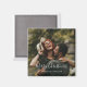 Modern Minimal 1 Photo Merry Christmas Script Overlay Magnet. Easy to personalise with your names and favourite photo.