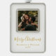 Modern Minimal Photo Christmas Script White Silver Plated Framed Ornament