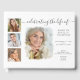 Modern, minimal memorial guest book with a photo collage of 4 pictures in remembrance of your loved one. The editable title says CELEBRATING THE LIFE OF handwritten script typography and personalised with their name, dates and a place to add your custom text if desired. PHOTO TIP: For fastest/best results, choose a photo with the subject in the middle and/or pre-crop it to a vertical rectangle shape for the large centre photo and square shapes for those on the left BEFORE uploading and use the CHANGE tab next to the sample photo in the PERSONALIZE section. Contact the designer via Zazzle Chat or makeitaboutyoustore@gmail.com if you'd like this design modified.