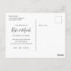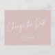 Custom-designed wedding postponement/change the date postcard featuring modern white hand lettering design on dusty rose/blush pink background.