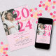 Modern Minimal Hot Pink Graduation Party Photo Invitation