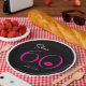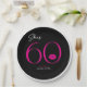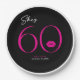 Modern and chic, this birthday paper plate design declares, "she's 60" and combines classic black and white with accents of bright hot pink, with a playful pair of lips. It's minimal design is a simple and fun design to celebrate the milestone birthday. Created by Simply Farmhouse Press.