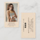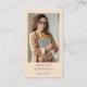 This business card features a photo layout for many professional titles like consultant, content developer, editor, sales consultant, etc. The reverse side features the contact info and business name. You can customise the text size, font, to fit your own personal style. Replace this sample place holder photo with your own portrait orientation business card. A peach pink background on the front and back of the card.