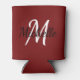 Modern Minimal Red Monogram Name + Initial Can Cooler